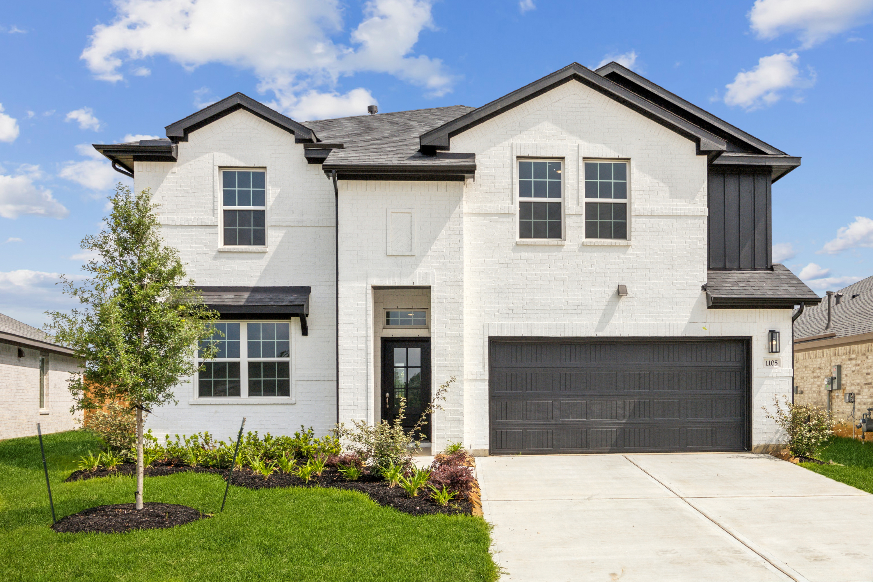 Brand New Construction by Megatel Homes! Lagoon life is coming to Huffman ISD! Discover Saint Tropez, a peaceful community found in Huffman, Texas that seamlessly blends suburban charm with rural tranquility, offering families a peaceful living experience. Whether you're enjoying a drink at the swim up bar, breaking a sweat in the state-of-the-art fitness center, or engaging in some friendly competition at the bowling alley, coming home here is a daily retreat. Why settle for the hustle and bustle when you can embrace the tranquility? Join us in a place where community bonds are strong, schools excel, and family. Megatel Homes Avery Plan is a two-story, Move In Ready & Never Occupied, 3,331 square foot home featuring four bedrooms, three and a half bathrooms, a game room, a flex space, a covered patio, and a two-car garage. Situated on a 50 ft lot, this home is available with elevation B, showcasing a distinct and stylish exterior design.