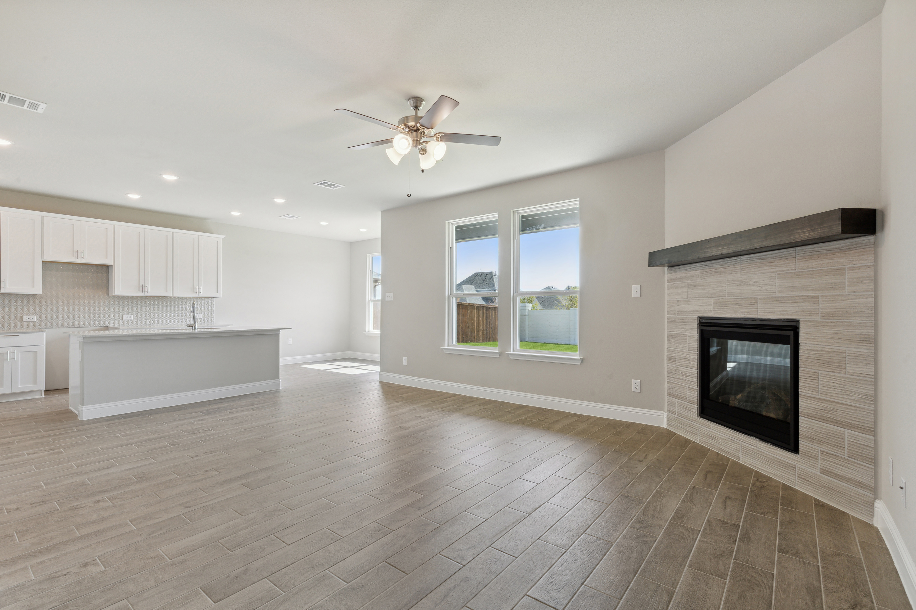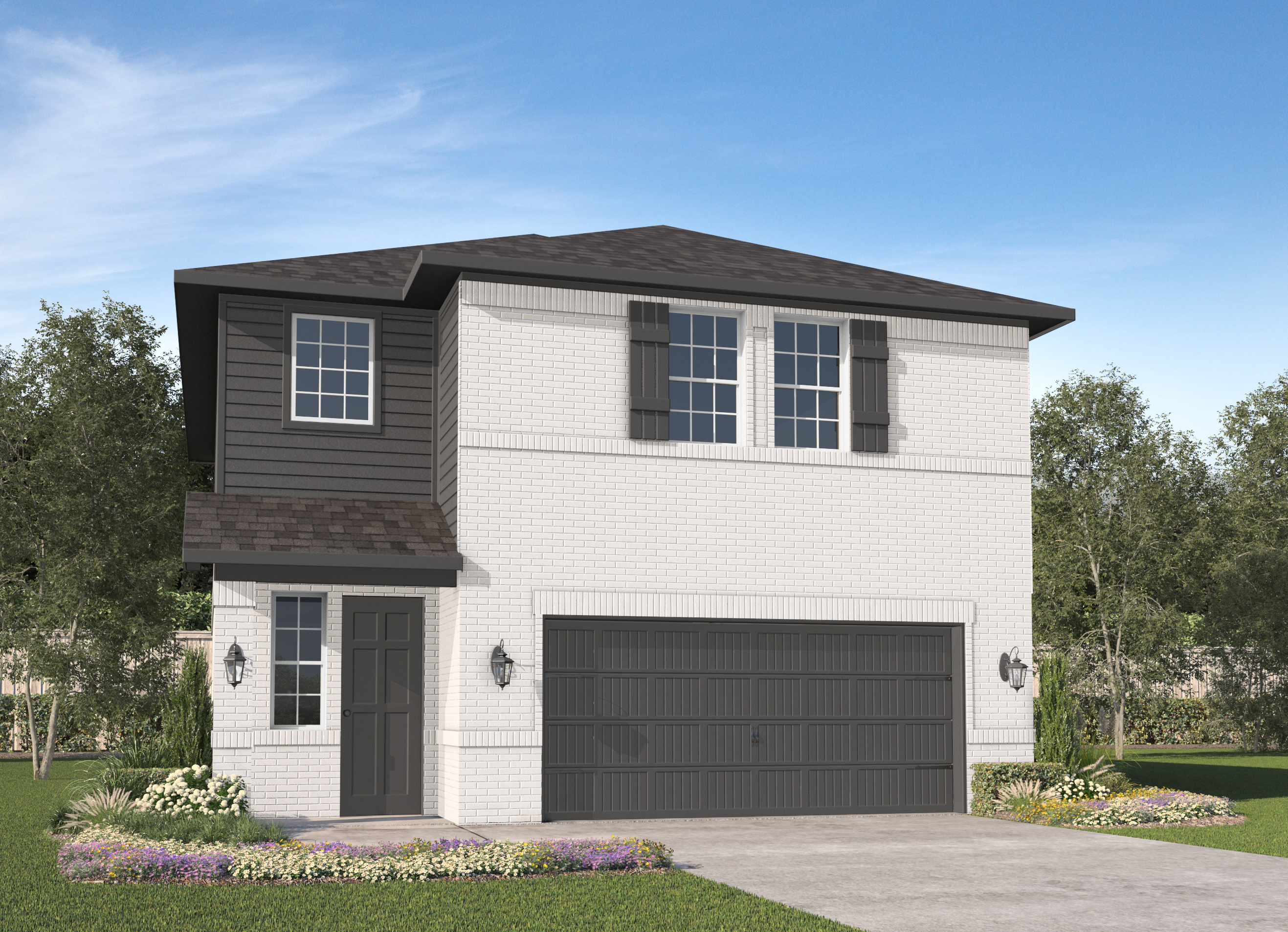 Our Bingham plan is a two-story, 1,849 square foot home featuring four bedrooms, two and a half bathrooms, a loft, and a two-car garage. This home is available with A, B, and C elevations.