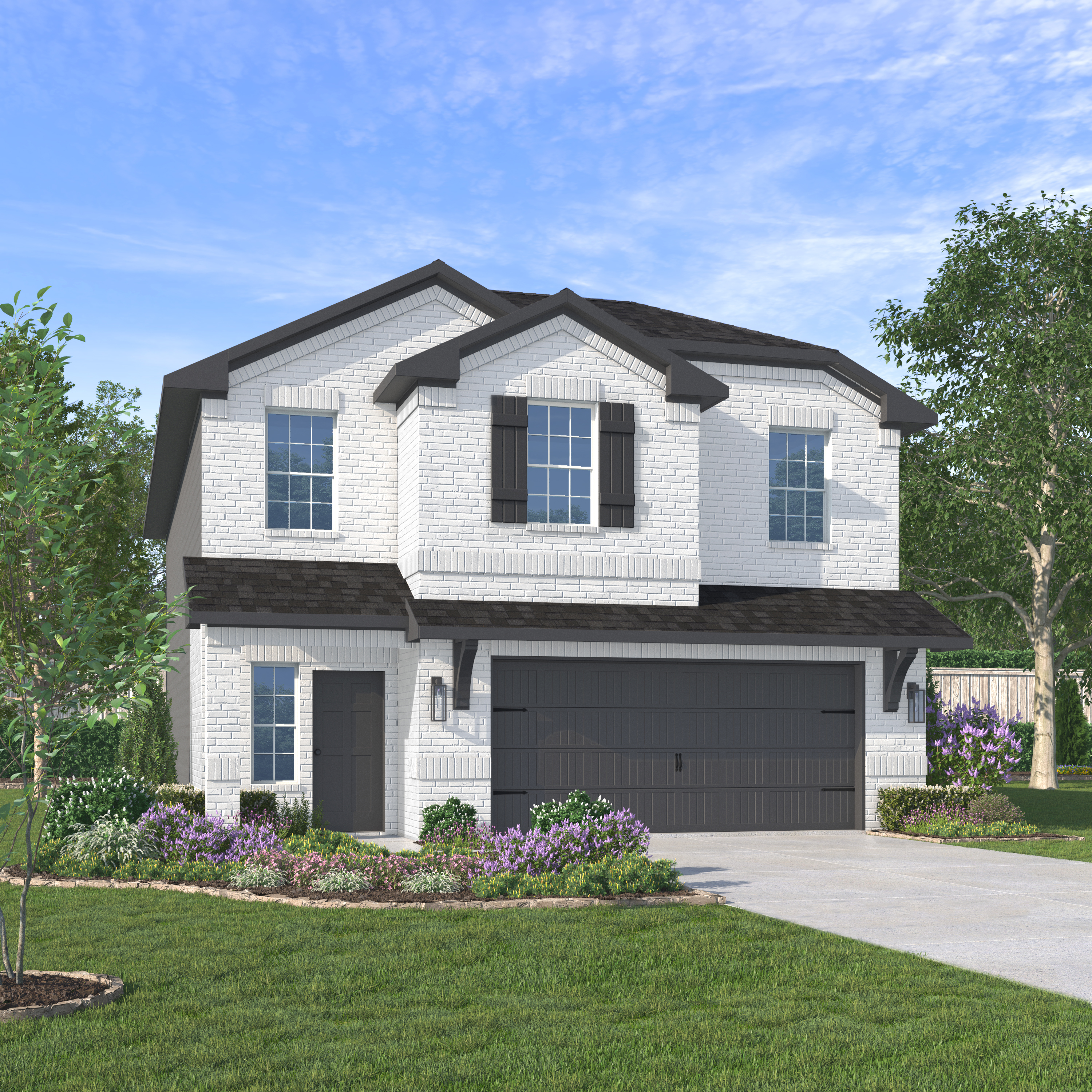 Our Dawson plan is a two-story, 1,801 square foot home featuring three bedrooms, two and a half baths, a loft, and a two-car garage. This home is available with A, B, and C elevations.