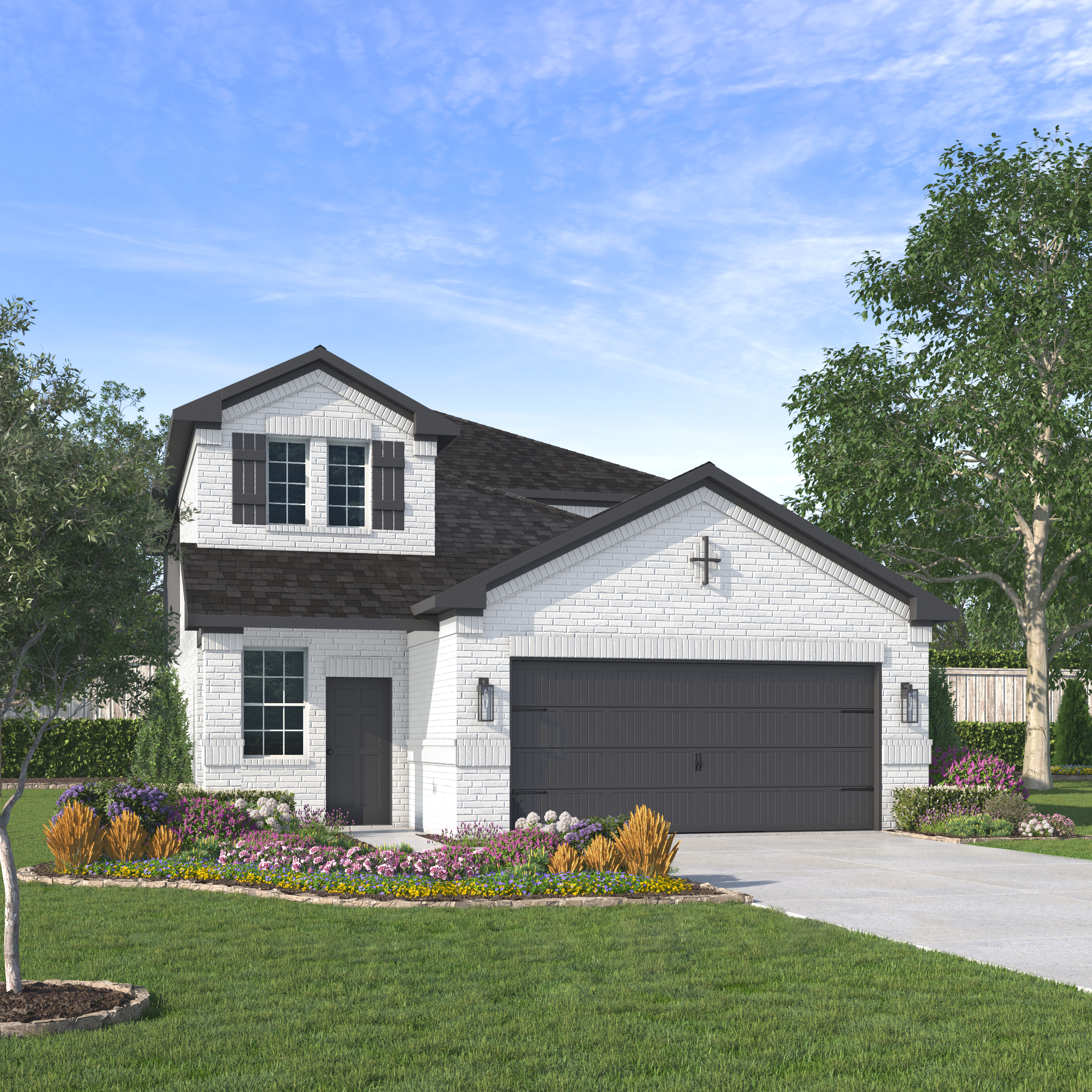 Our Cleo plan is a two-story, 2,117 square foot homes featuring four bedrooms, two and a half bathrooms, a game room, and a two-car garage. This home is available with A and B elevations.