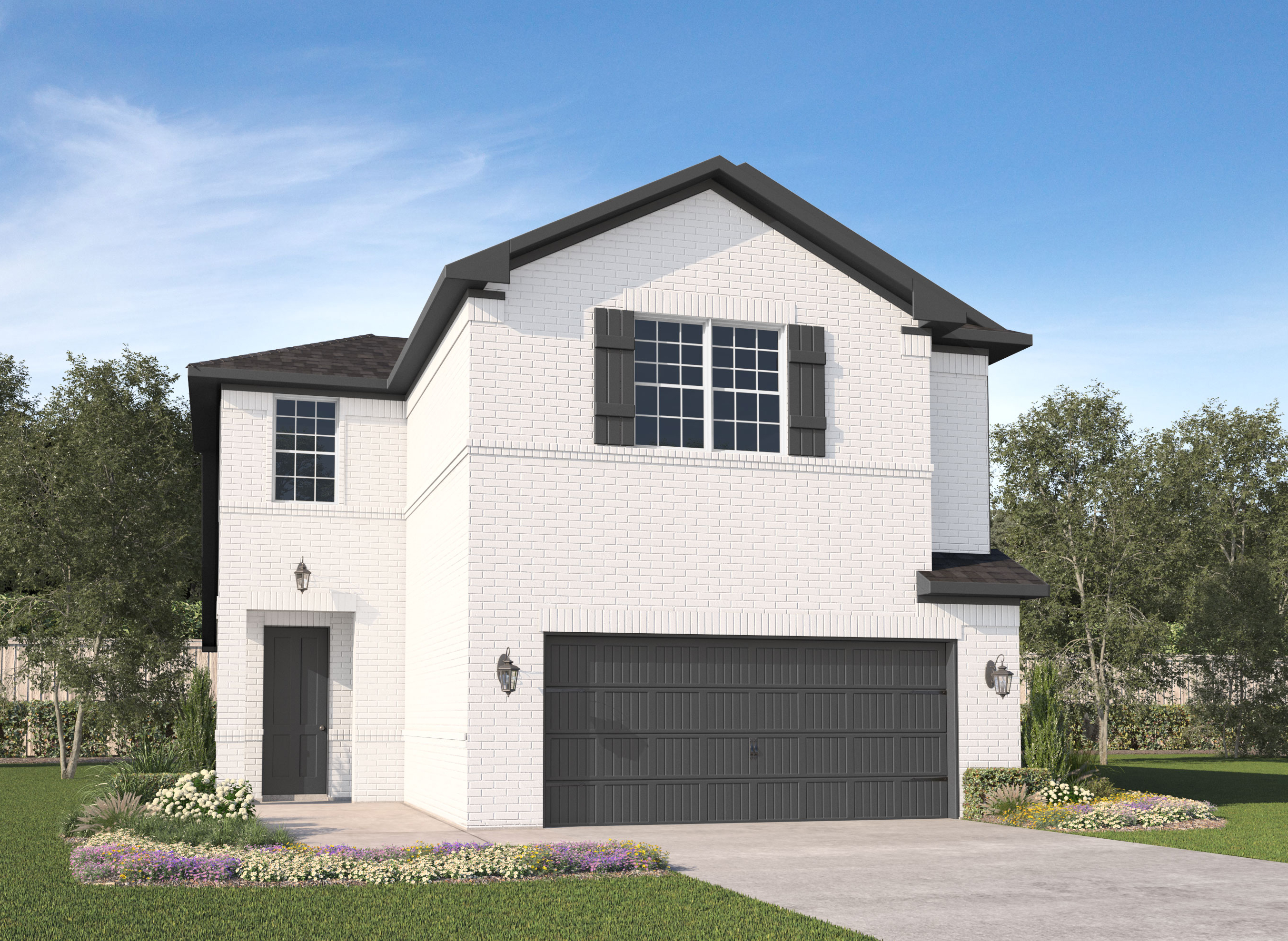 Our Scarlett plan is a two-story, 2,037 square foot home featuring four bedrooms, three bathrooms, and a two-car garage. This home is available with A, B, and C elevations.