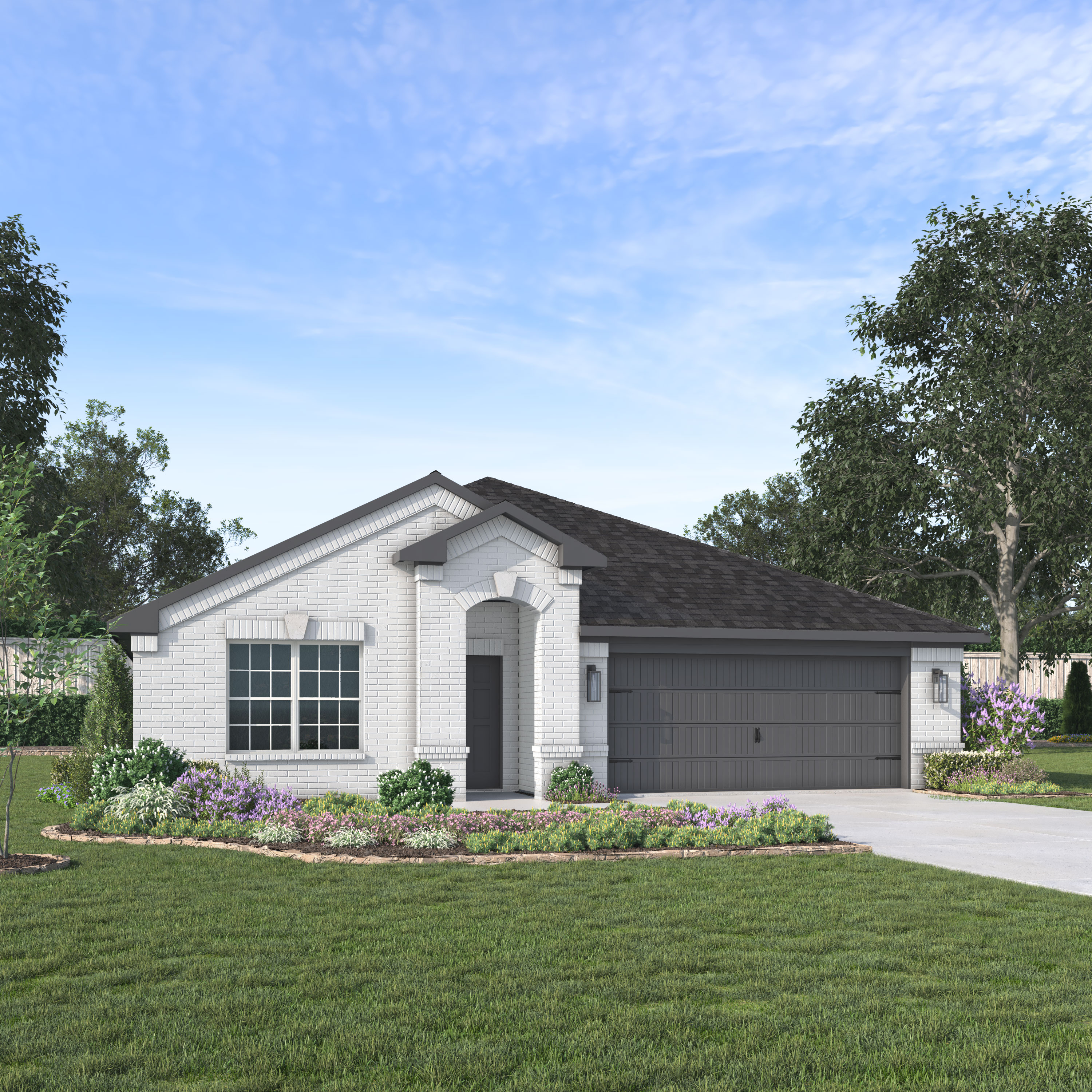 Our Harlow plan is a one-story, 1,930 square foot home featuring three bedrooms, two bathrooms, a flex room, and a two-car garage. This home is available with A, B, and C elevations.