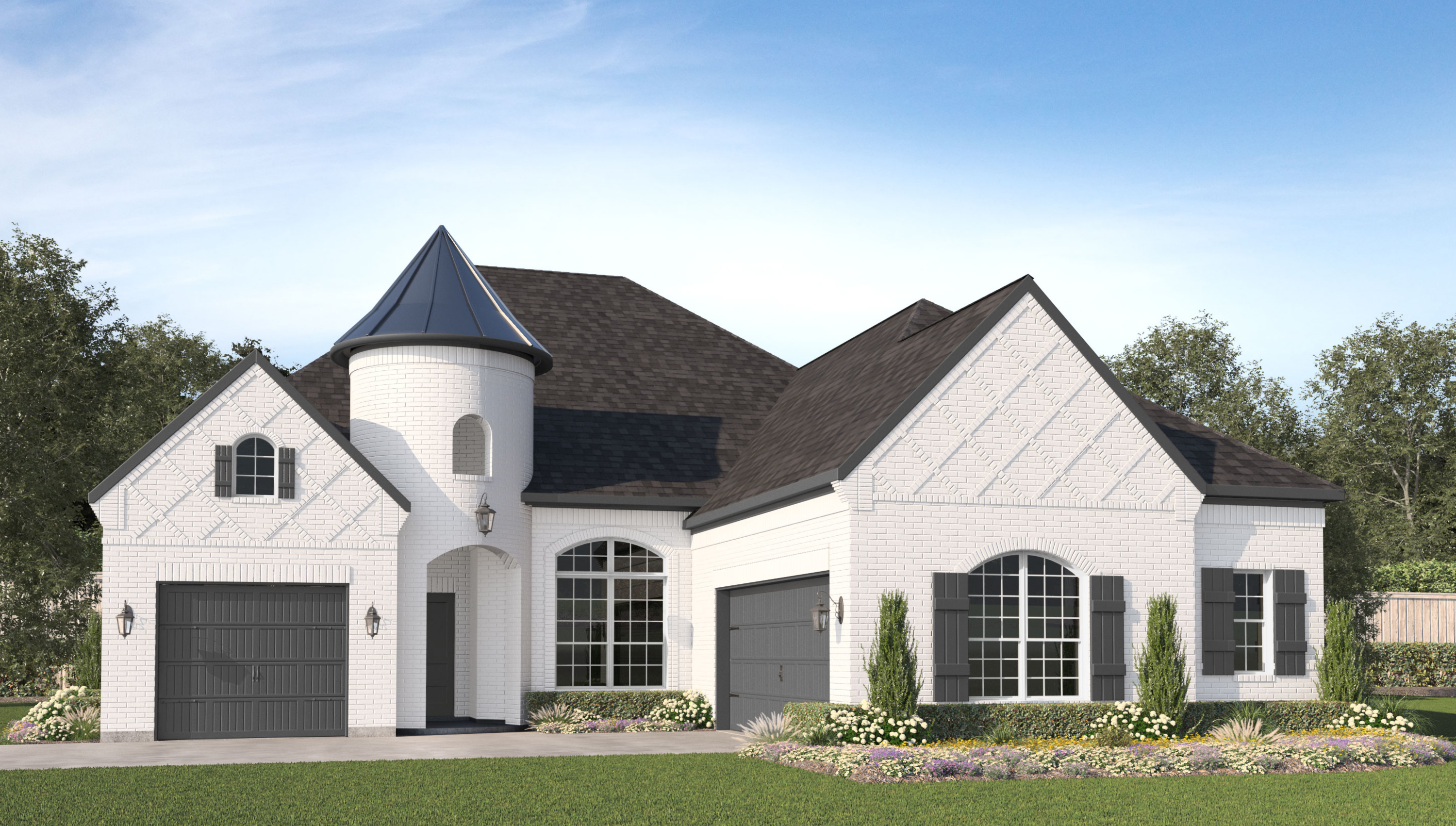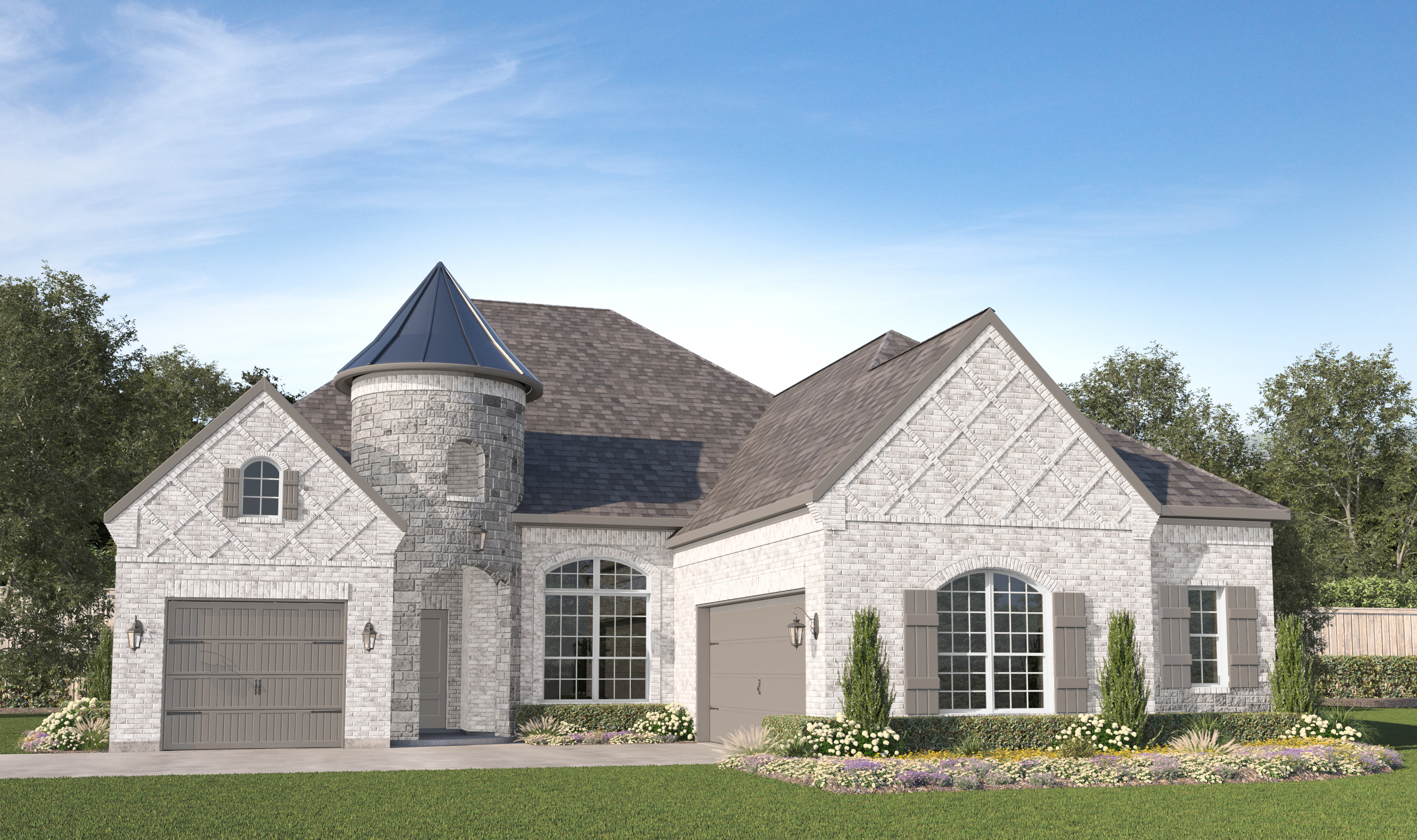 Our Baypoint plan is a one-story, 2,663 square foot home featuring four bedrooms, two and a half bathrooms, and a three-car garage. This home is available with A, B, C and E elevations.