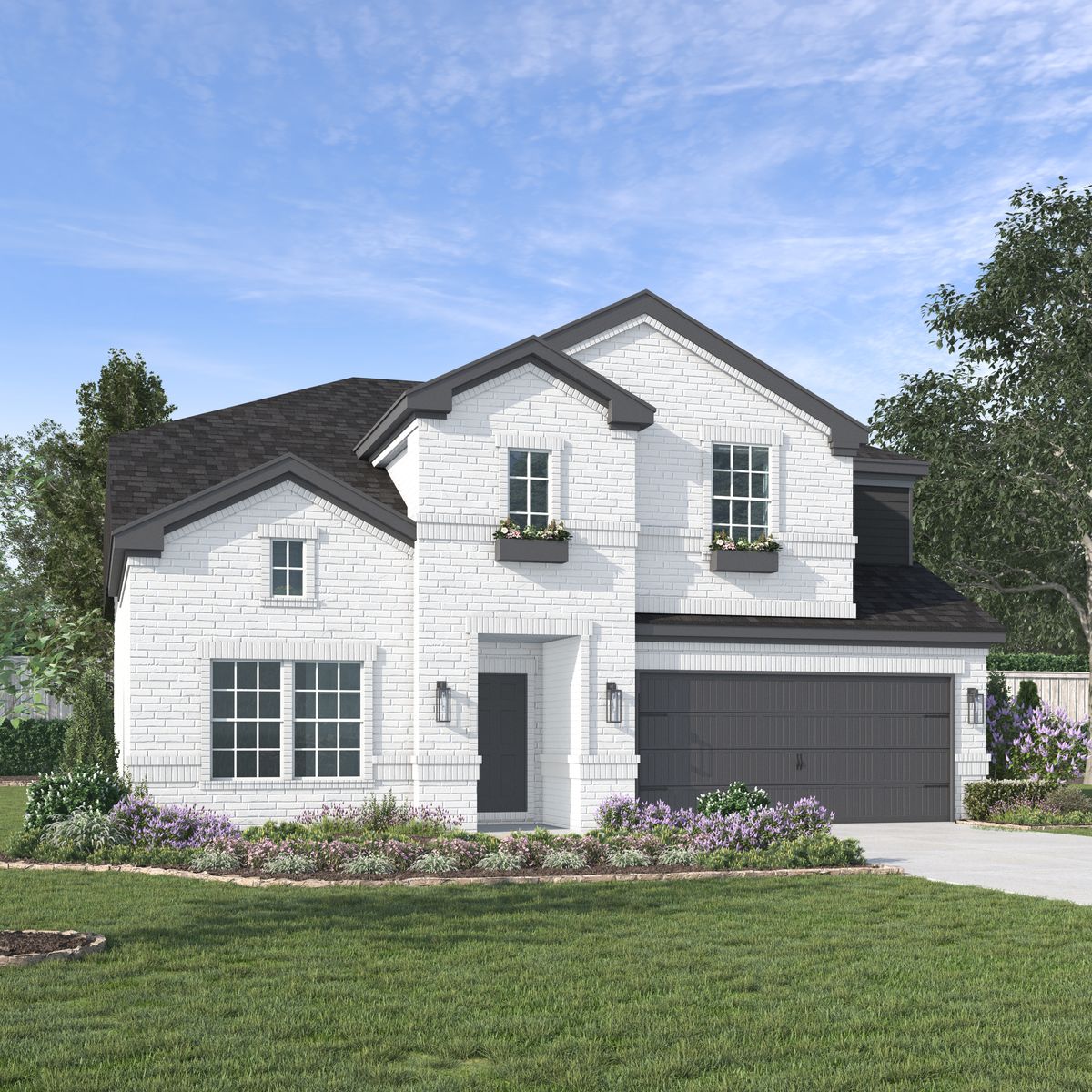 Our Enzo plan is a two-story, 2,583 square foot home featuring three bedrooms, two and a half bathrooms, a game room, a flex space, and a two-car garage. This home is available with A and B elevations.