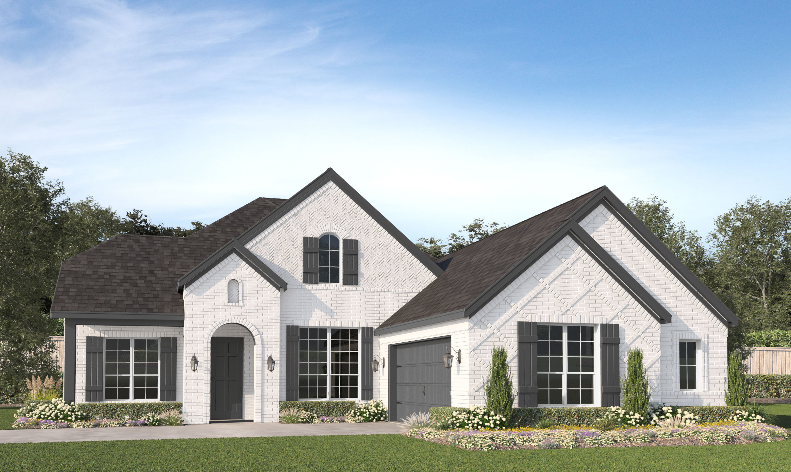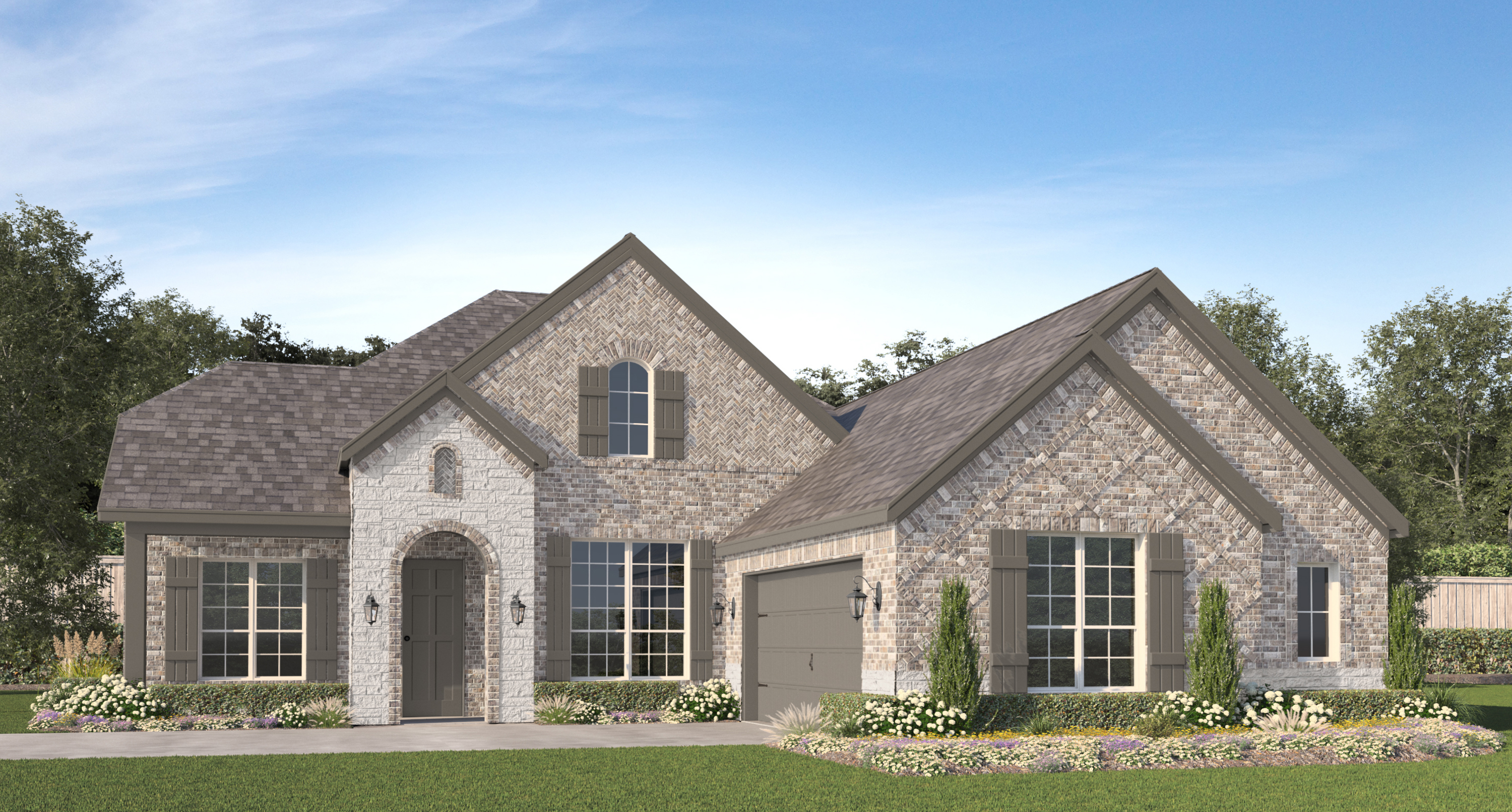 Our Cambridge JS plan is a one-story, 2,409 square foot home featuring four bedrooms, two and a half bathrooms, and a two-car garage. This home is available with an A, B, and C elevation.