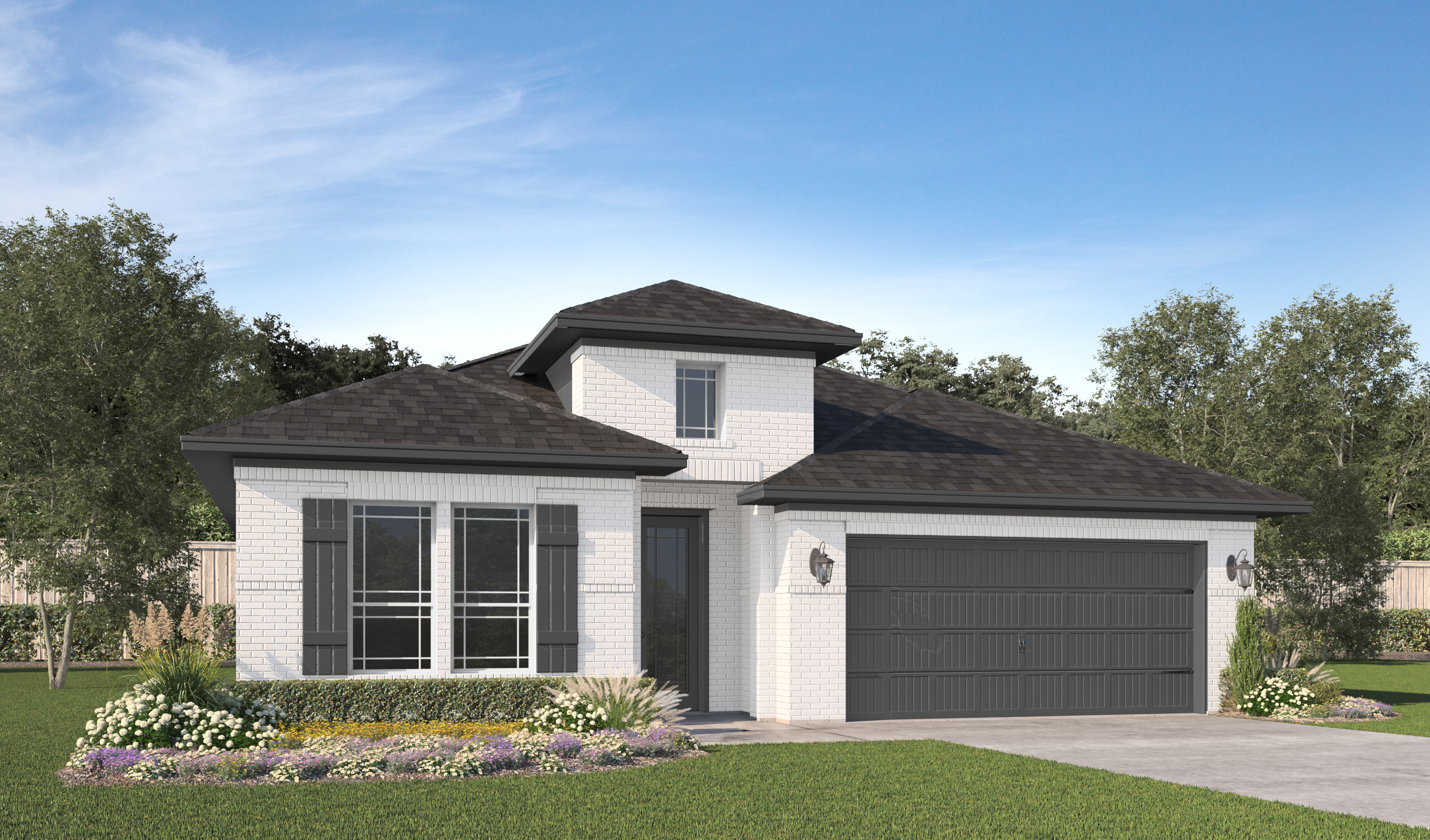 Our Waverly plan is a one-story, 2,165 square foot home featuring four bedrooms, two bathrooms, and a two-car garage. This home is available with A, C, D, and E elevations.